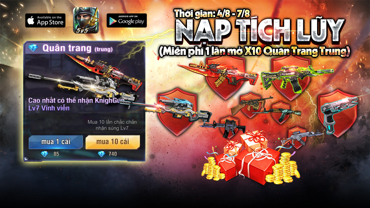 Mỗi ngày, người chơi nạp thẻ lần đầu giá trị bất kỳ sẽ được nhận ngẫu nhiên một trong các vũ khí sau: