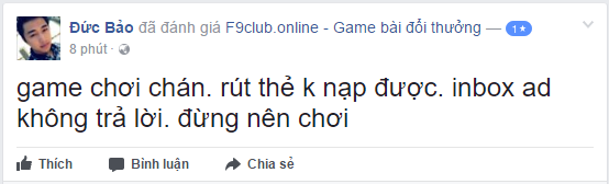 - Không chỉ riêng mình trên Fanpage của F9club.Online cũng rất nhiều lời phàn nản về game này.